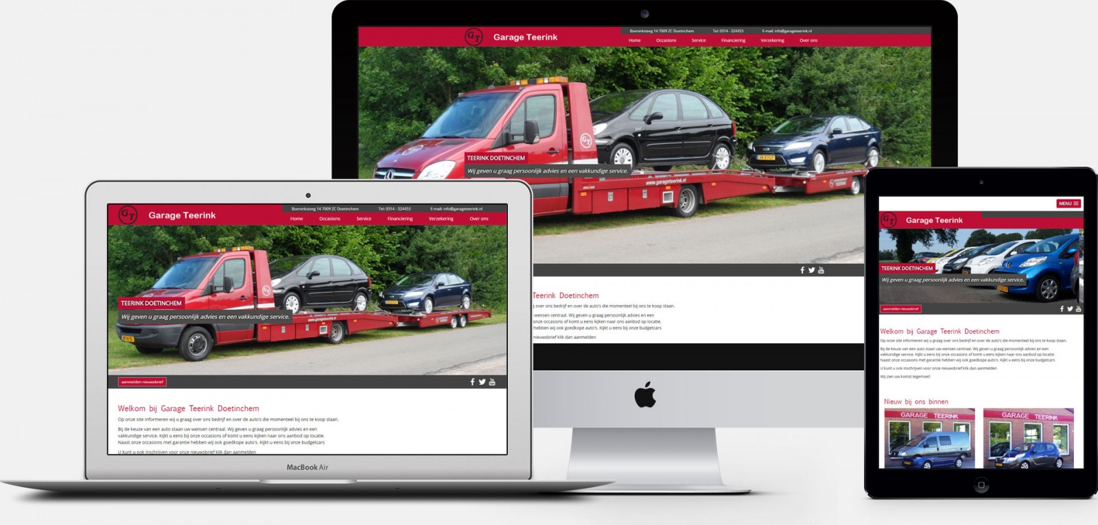 De website van Garage Teerink uit Zelhem heeft als focus het aanbieden en presenteren van de gebruikte auto`s. De site is volledig responsive en wordt volledig beheerd vanuit het vir2biz CMS. De occasionlijst wordt gegenereerd vanuit het RDC / OBS occasionsysteem d.m.v. een API verbinding. Hierdoor kunnen de auto`s in geheel eigen stijl en binnen de huisstijl gepresenteerd worden.