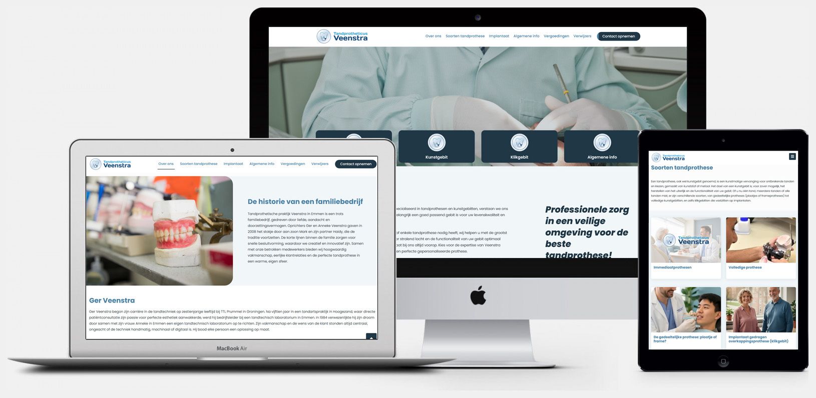 Voor Tandprothetische Praktijk Veenstra in Emmen, sinds 1984 gespecialiseerd in tandprothesen en kunstgebitten, heeft vir2biz een volledig nieuwe website ontworpen en opgebouwd.